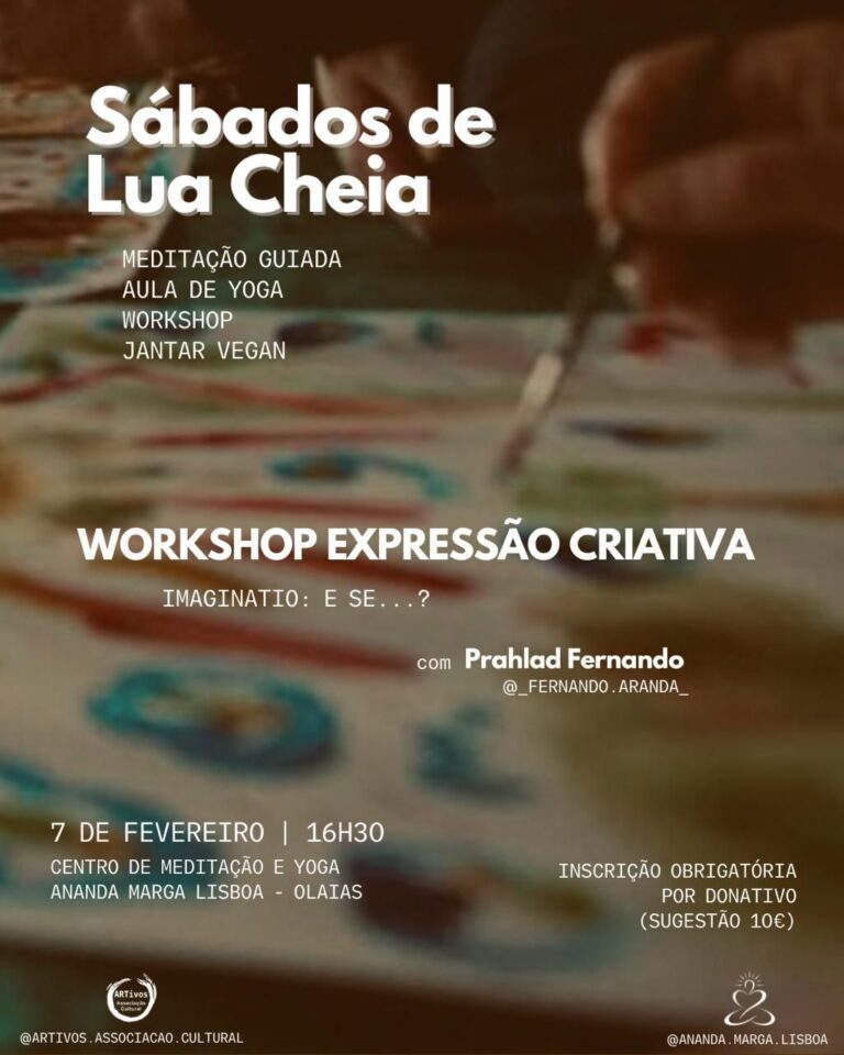 Uma parceria entre a Ananda Marga Lisboa e a ARTivos, os Sábados de Lua Cheia são eventos que combinam práticas espirituais com um jantar em convívio seguido de uma forma de expressão artística.