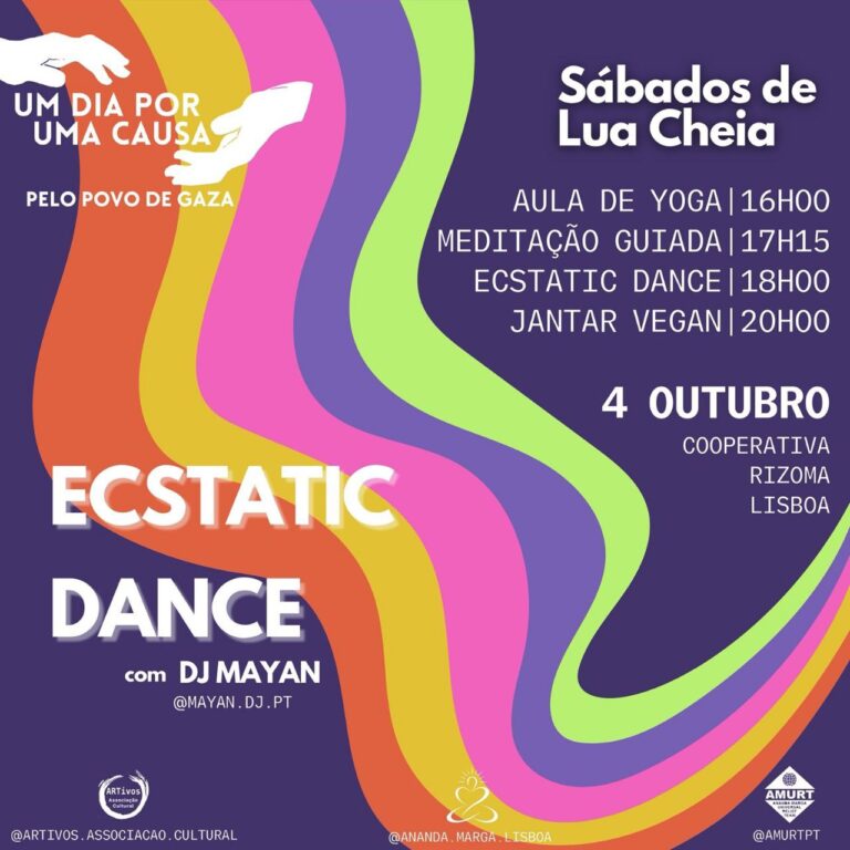 A actividade para este mês será uma Ecstatic Dance, uma conexão activa que promove presença, liberta padrões condicionados e desperta emoções como alegria, êxtase, amor e paz. Facilitado pela DJ Mayan (@mayan.dj.pt)